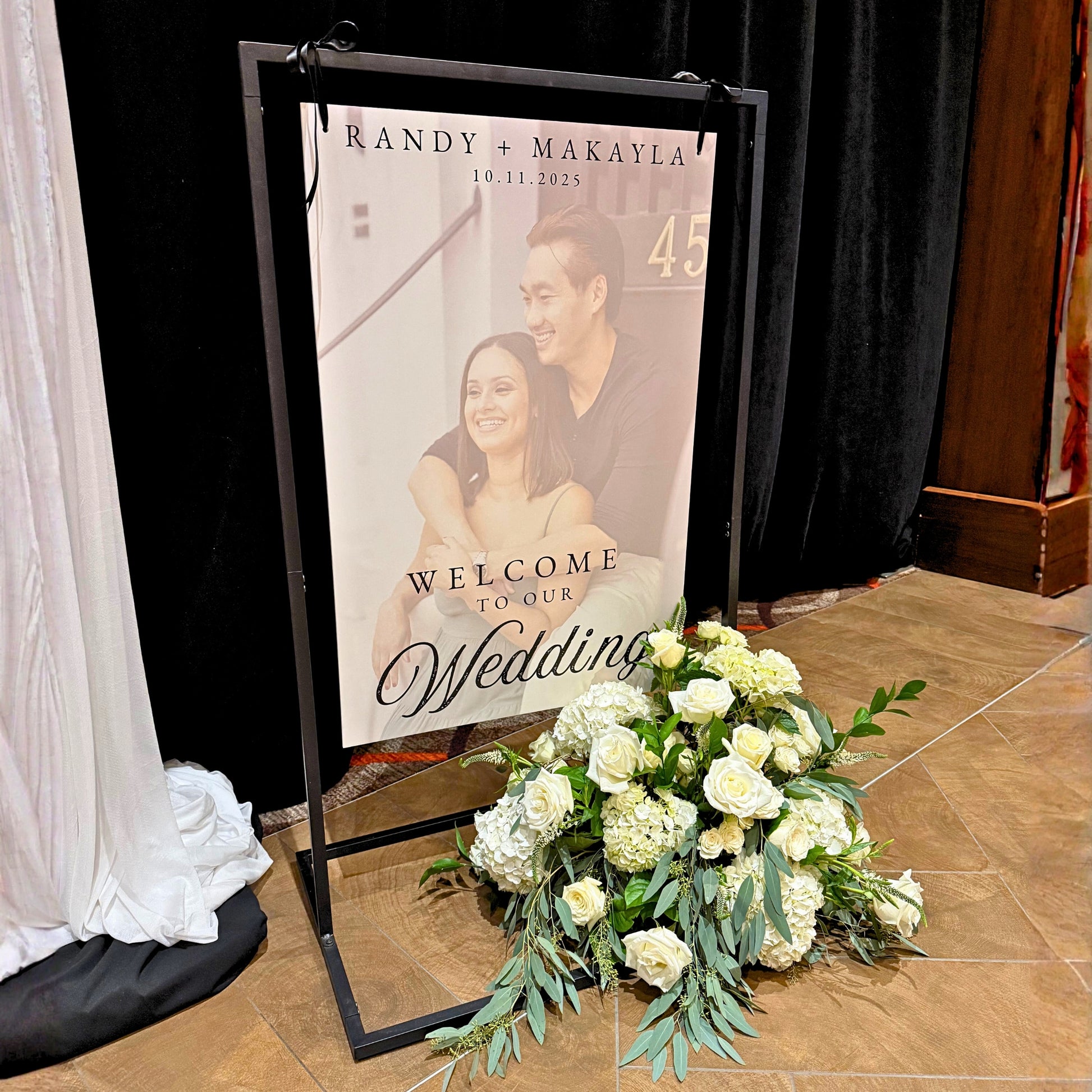 Give your guests a lasting first impression with your event signage hanging from our metal holder.